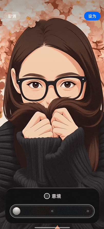 如上图所示,我们在相册中找到拍好的实况照片,在照片界面右上角点击“设置”——“设为壁纸”,在锁屏界面点击“景深”选项,系统就能够自动区分画面中的人物主体与背景,并对主体进行动态渲染,使壁纸在解锁或查看时呈现出动态效果。