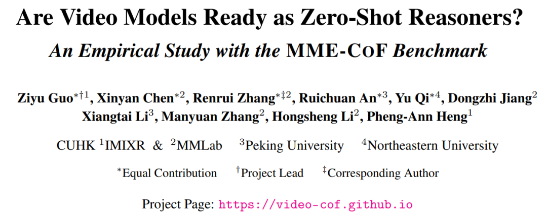 论文题目:Are Video Models Ready as Zero-Shot Reasoners? An Empirical Study with the MME-CoF Benchmark