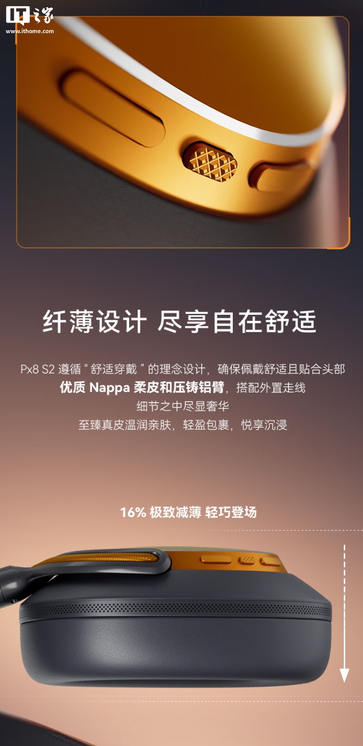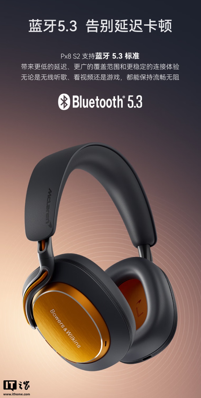 7799 元:宝华韦健 Px8S2 头戴耳机上新迈凯伦联名版,“木瓜橙”配色 +Nappa 皮革设计