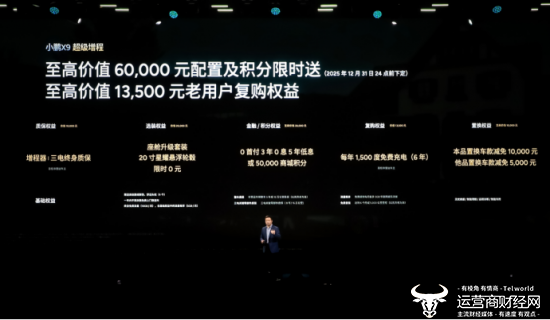 小鹏汽车同步推出多重上市权益及丰富购车礼遇:即日起至2025年12月31日24点前下定,可享受至高价值60000元配置及积分权益:增程器和三电系统终身质保权益价值10000元;座舱升级套装+20寸星耀悬浮轮毂选装权益价值20000元限时免费;0首付3年0利息5年低利息金融权益或50000商城积分权益至高价值30000元。更有老用户还可享受至高价值23500元的复购权益:每年1500度免费充电6年有效期的复购权益价值13500元;本品置换车款减免10000元和他品置换车款减免5000元。