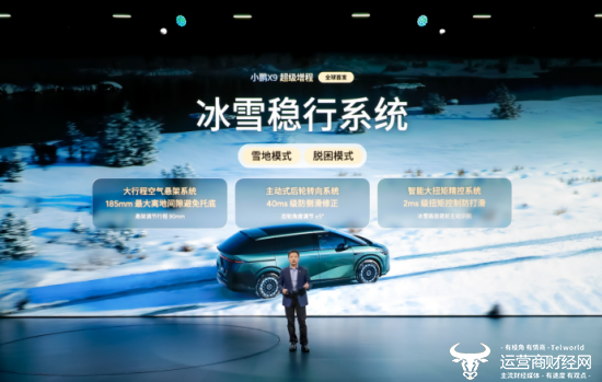 小鹏X9超级增程的主动安全同样成为行业标杆。新车具备全场景极限爆胎不失控能力,在160km/h积水路面、150km/h暴雨天气等极端工况下即使爆胎依然能稳定行驶。在面对高速施工/抛锚车等特殊情况时,也能自动紧急避让。新车搭载的AEB与AES系统最高支持130km/h刹停与避让。此外,面对北方用户最关心的冰雪行车,小鹏X9超级增程也能从容应对。其搭载的冰雪稳行系统,带来雪地模式及脱困模式。通过185mm最大离地间隙的大行程空气悬架系统、毫秒级响应的后轮主动转向系统以及智能大扭矩系统的协同配合,小鹏X9超级增程能实现雪地结冰路面不打滑,即使是10cm雪坑后轮陷车,也能顺利脱困。