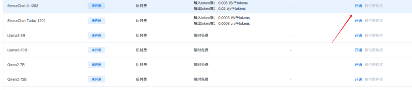 前往 服务列表 开通模型,我这里使用商汤日日新的SenseChat-5-1202语言模型