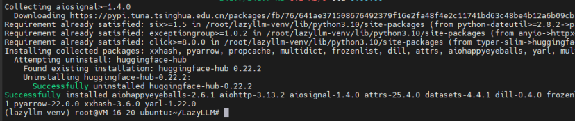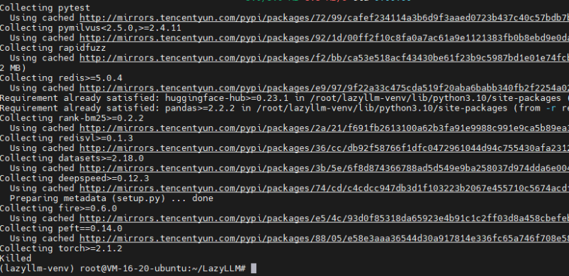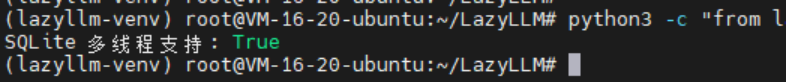 在终端提示符前成功出现lazyllm-venv,表示激活成功。创建虚拟环境的目的就是为了相互隔离环境,避免全局污染。