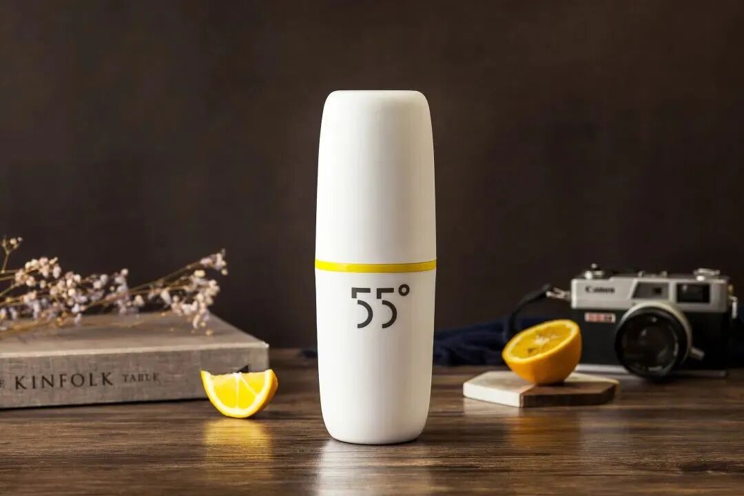 于是,我用三个月时间,做出了55度杯。这个杯子,你把100度的热水倒进去,摇十下,或者静置一分钟,就能够把水从100度降到55度。