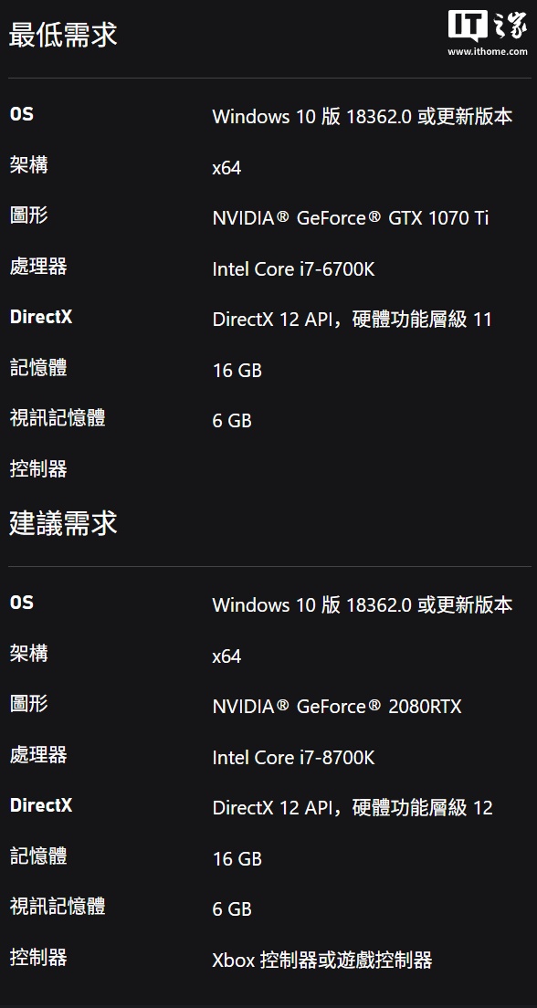 根据商店详情页可以看到,本作体积为 53.25GB,支持 Play Anyware,购买一份游戏即可在 Xbox 和 PC 平台随处游玩,PC 平台最低配置要求酷睿 i7-6700K 处理器、RTX 1070 Ti 显卡,推荐 i7-8700K 处理器、RTX 2080 显卡。