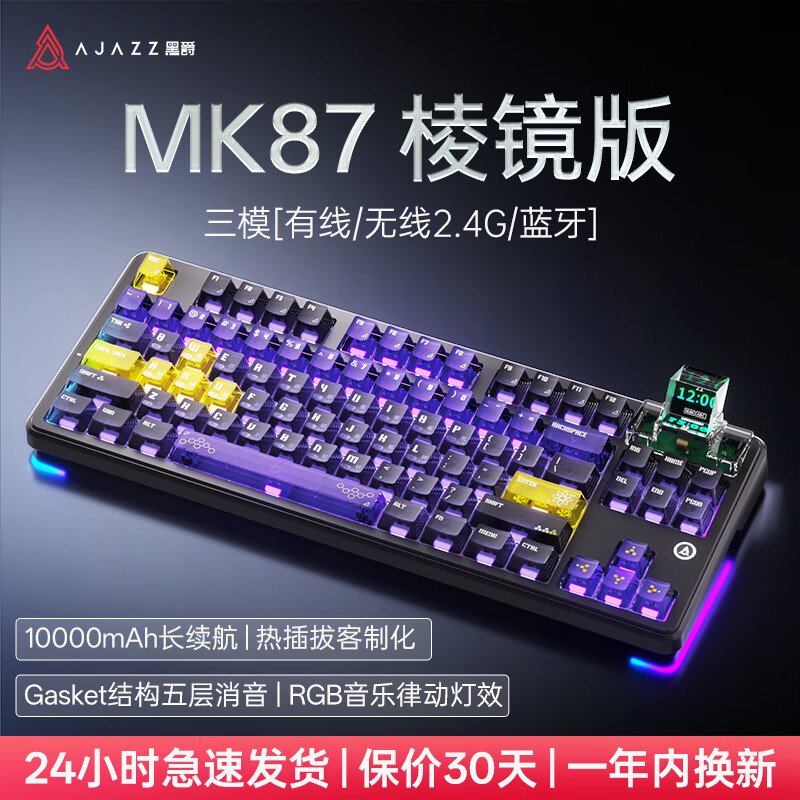 IT之家 11 月 21 日消息,黑爵 AJAZZ 本月 18 日推出了 MK87 棱镜版三模键盘。该型号配备 1.33 英寸棱镜屏幕,号称是“全球首款棱镜键盘”。