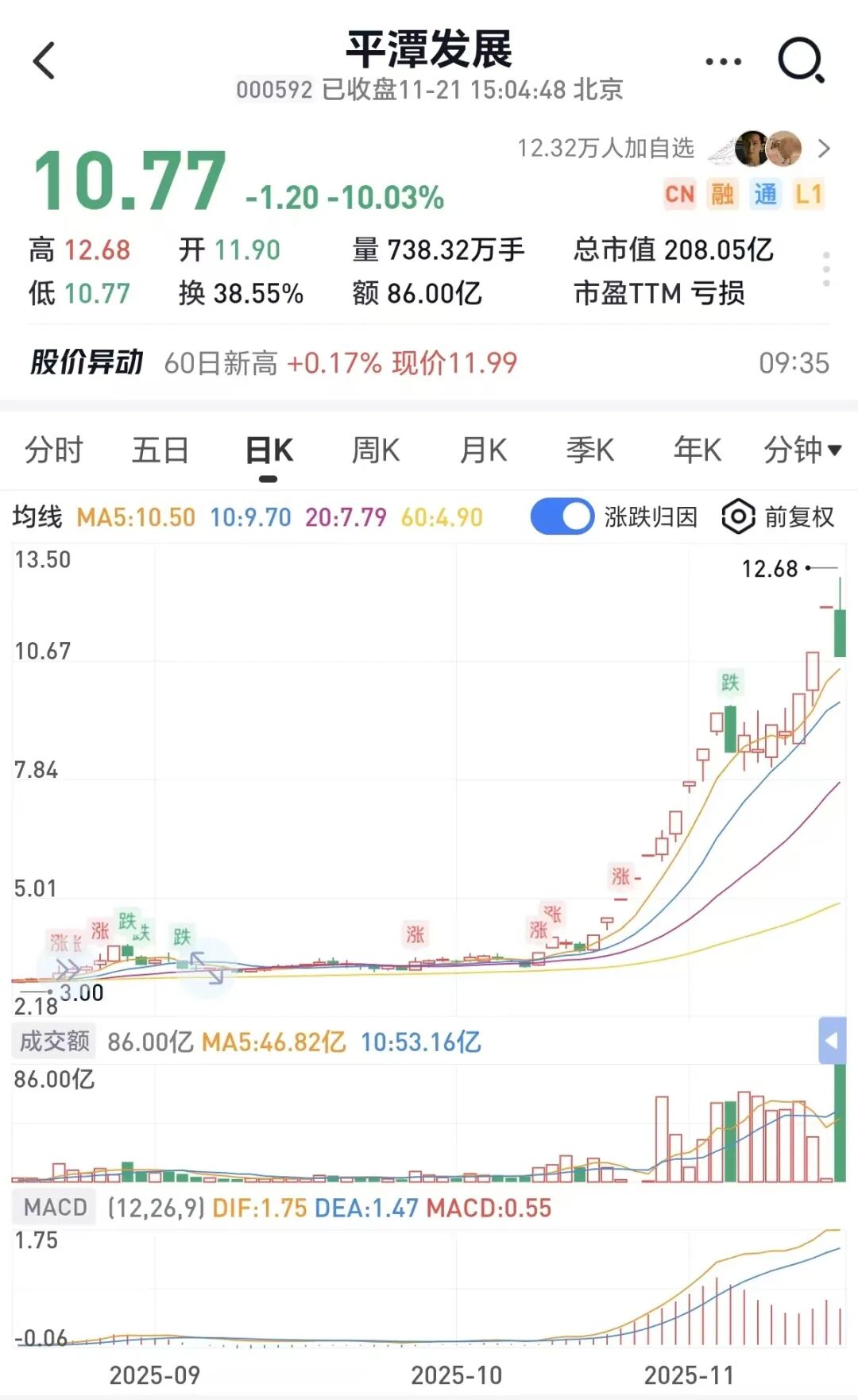 平潭发展此前公告称, 公司股票自10月17日至11月17日价格涨幅为255.19%,股价波动较大。公司当前的滚动市盈率、市净率与同行业情况有较大差异。提请广大投资者充分了解股票市场风险因素,理性判断,注意投资风险。