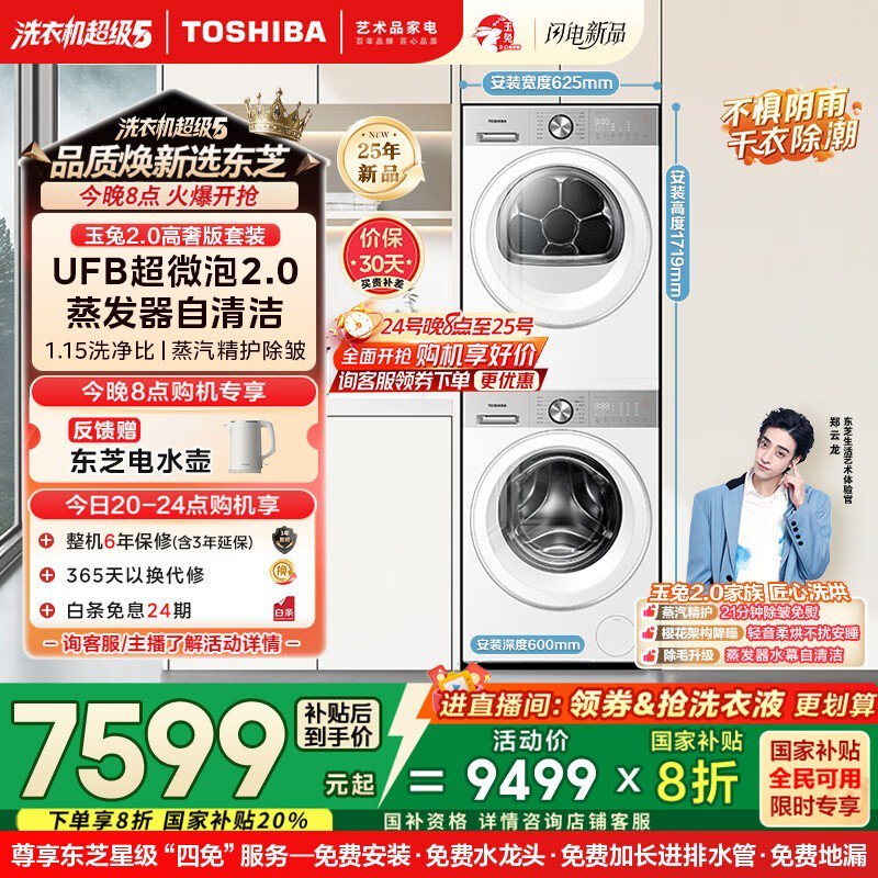 东芝玉兔2.0高奢洗烘套装,享补贴到手仅9499元
