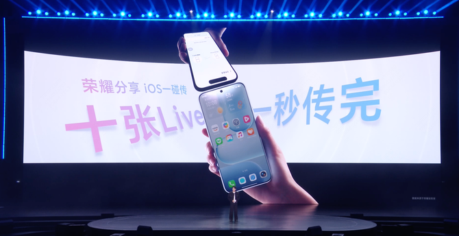 针对影像创作的痛点,YOYO更能化身私人修图师,支持“一语实况图消除路人”“一语暗光增强”等精准操作——用户只需通过语音指令提出需求,AI便会快速处理图像,无需手动调整参数,为用户提供更快、更完美的出片体验。而在创作完成后,该系列新增的“iOS一碰传”特性可实现“十张Live照片一秒传完”,大幅提升苹果与荣耀设备间的文件传输效率,让影像分享无缝衔接。