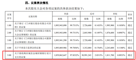 近期,兰州银行发布2025年第一次临时股东大会决议公告,会议以特别决议审议通过了多项议案,其中包括关于拟收购庆城县金城村镇银行设立支行的议案。