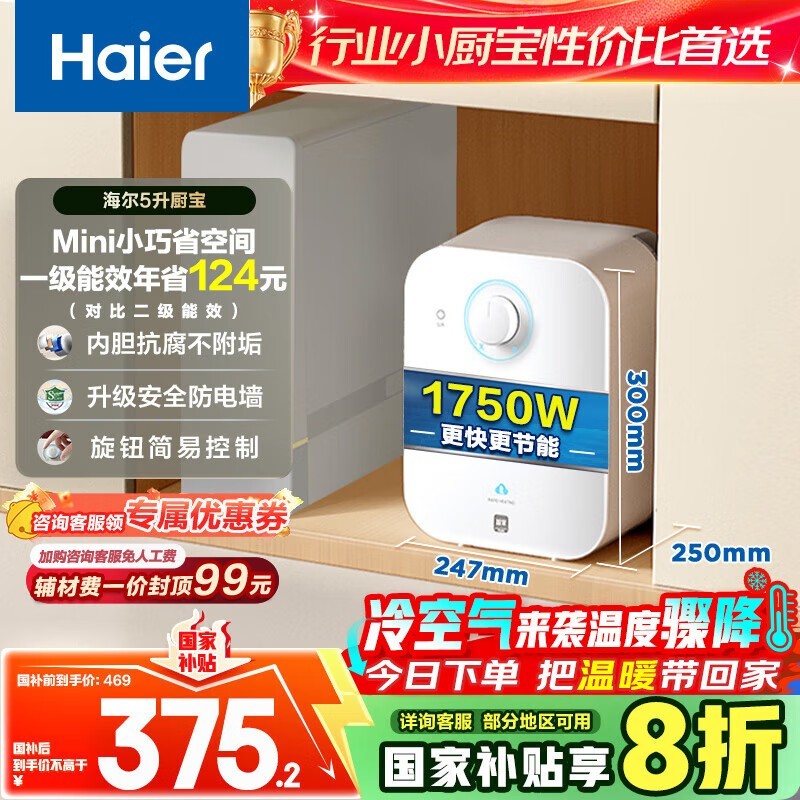 未经允许不得转载:紫竹林-程序员中文网 » 海尔5L储水式厨宝直降77.8元!