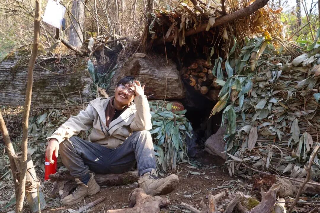 另一个选手“道友”始终没能钻出火,进入决赛前已经无火生存了41天。他也是“荒野小白”,第一天进山,只顾着找物资,从山顶上扛了几十斤猕猴桃,最后因为没搭庇护所,只能在赛场中间的管道上睡了一夜。第二天,他着手搭建庇护所,好不容易搭完,山里又连续下了近十天的雨。终于等到雨停,他已经没力气生火,只好选择无火生存,靠生吃野梨、猕猴桃和山药扛了下来。
