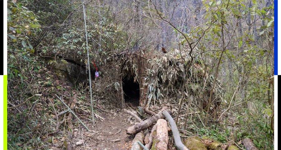 棕色的泥土坡上,一个个被踩出的凹坑形成一条路,通往树林和灌木丛。茅草和枯枝搭起的庇护所,隐藏在巨石、土坡和树林背后,走近了,能闻到一阵阵火烧的味道,白烟从庇护所的深处升起来,源头是持续燃烧的火种。