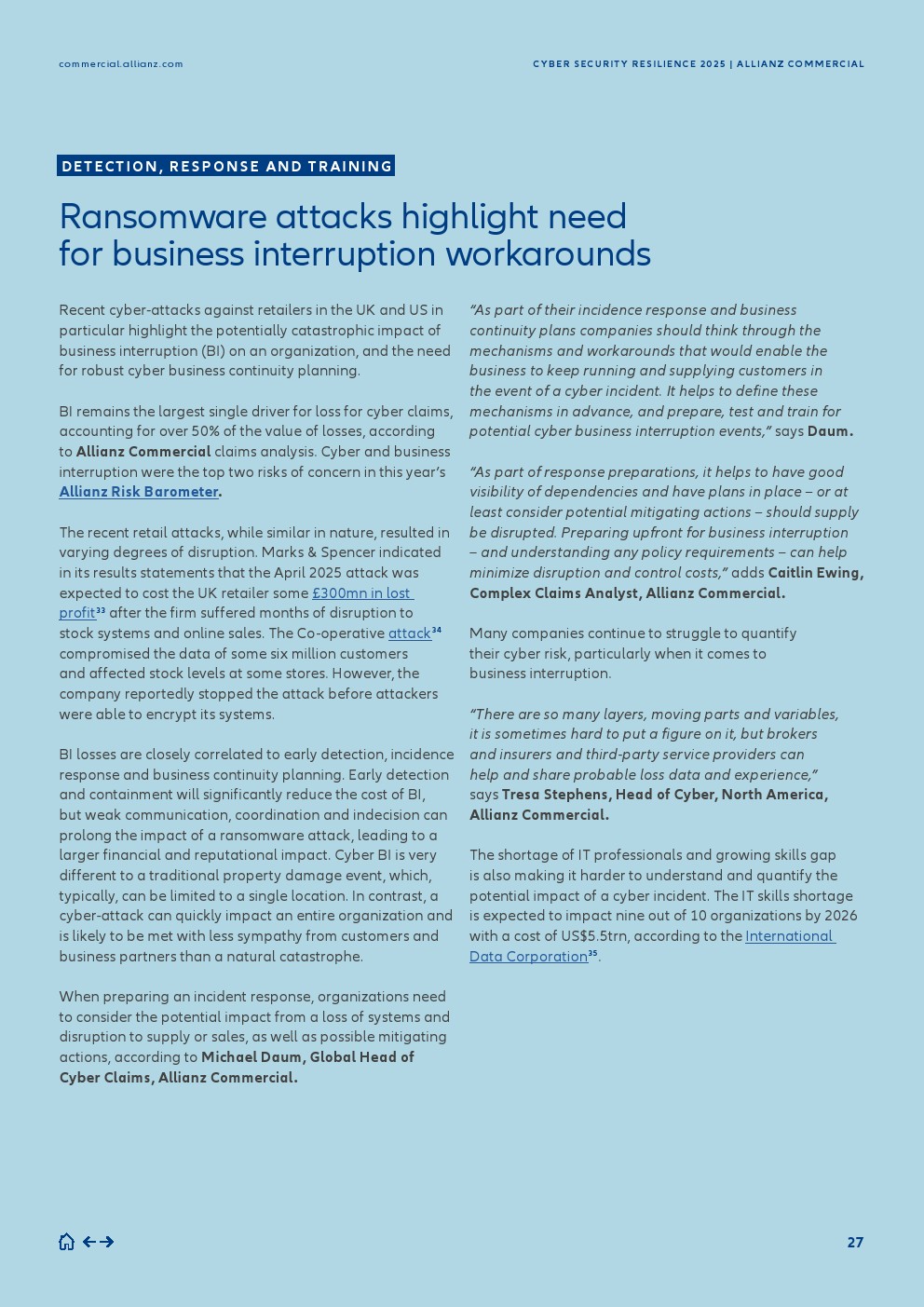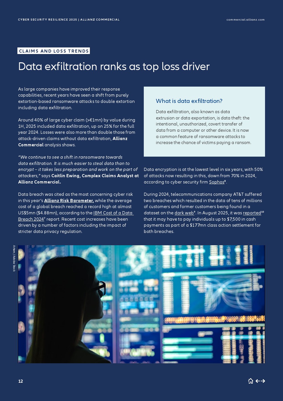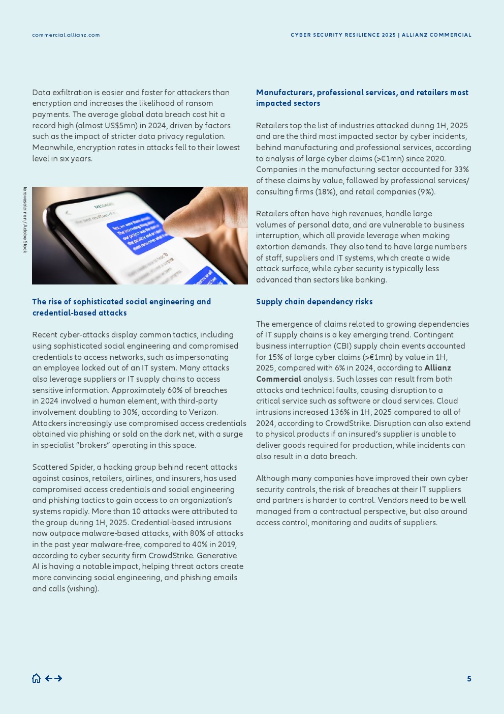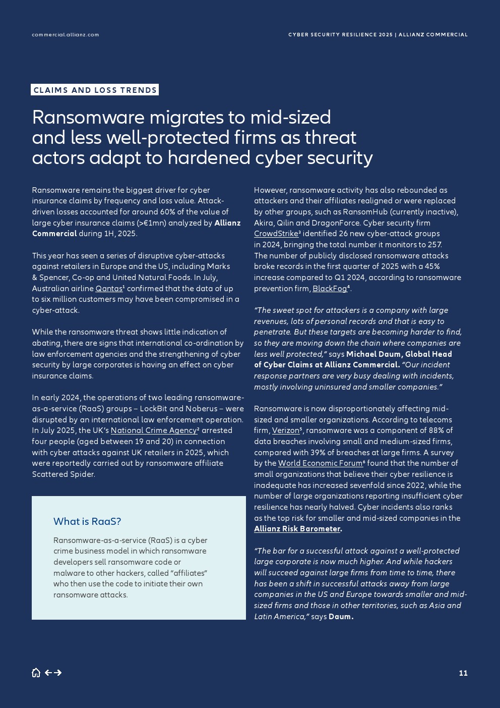 随着大公司提高了其响应能力,近年来观察到从纯粹基于勒索的攻击转向包括数据窃取的双重勒索——2025年上半年,40%的大额网络索赔(大于100万欧元)价值包含数据盗窃,高于2024年全年的25%。