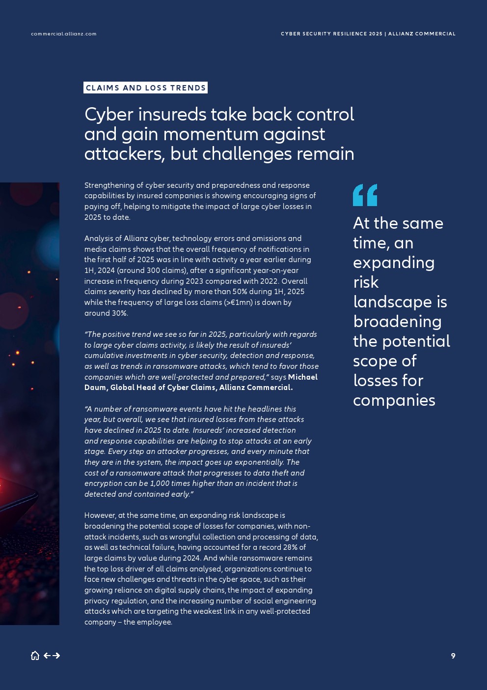 2025年的网络风险与保险态势揭示出一个复杂且不断演变的威胁环境:受保公司通过加强网络安全及准备与响应能力,正变得对攻击更具韧性,这有助于减轻截至2025年迄今大型网络损失的影响。