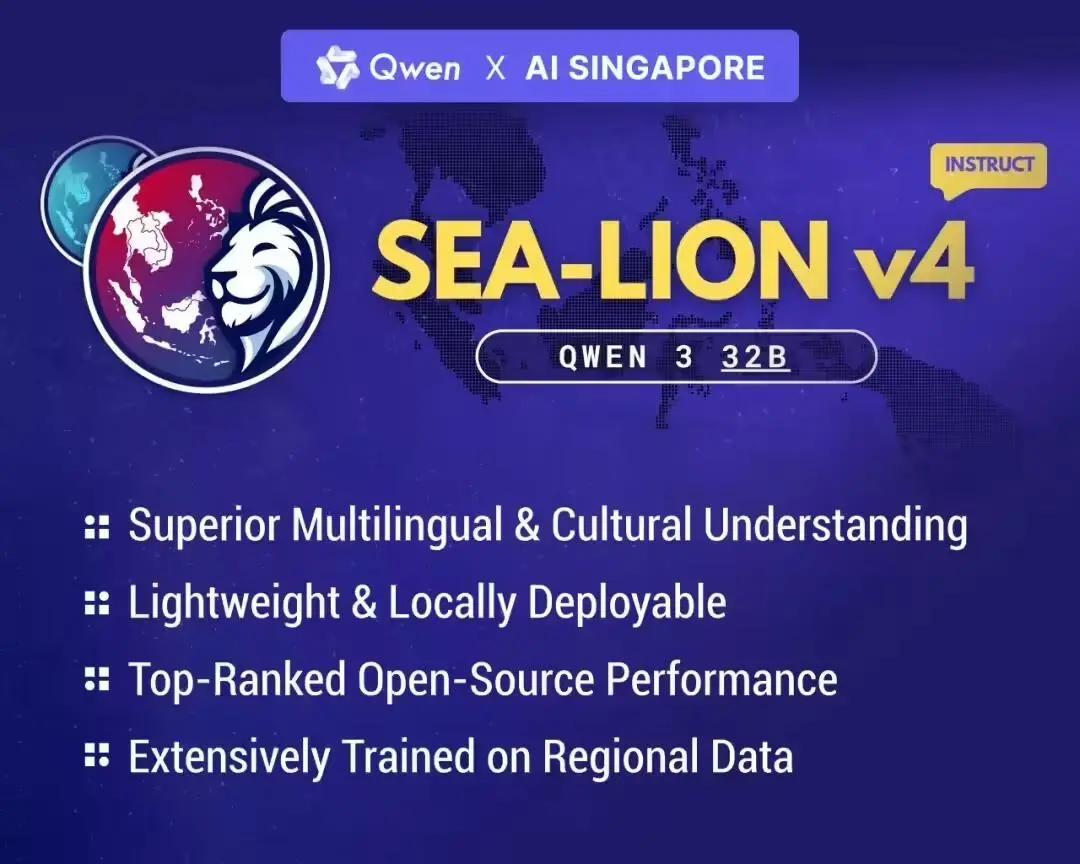 11 月 27 日消息,据阿里云官方公众号,新加坡国家人工智能计划近日发布了一款名为 Qwen-SEA-LION-v4 的东南亚多语言大模型。该模型的核心技术底座基于阿里巴巴的“通义千问”开源模型构建。