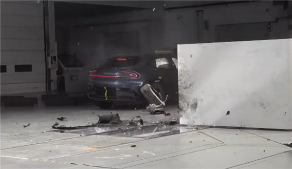 测试车辆为小米YU7早期试验车,采用正面25%重叠小偏置碰撞测试,测试时速为64km/h。主要模拟场景:车头1/4小面积碰撞,与对向车辆或路边物体(如桥墩)碰撞等,是碰撞测试中最苛刻的场景之一。
