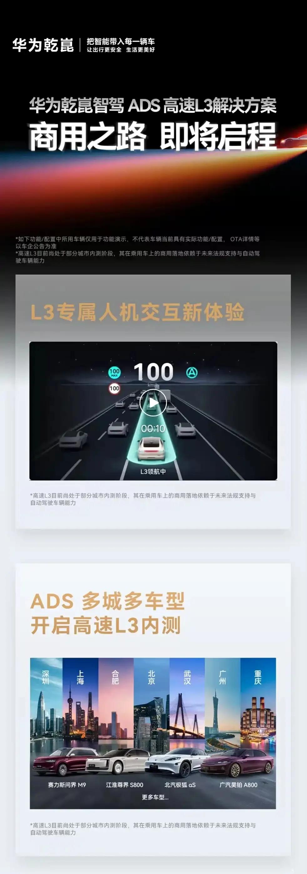 汽车事件四:华为乾崑智驾发布ADS高速L3解决方案