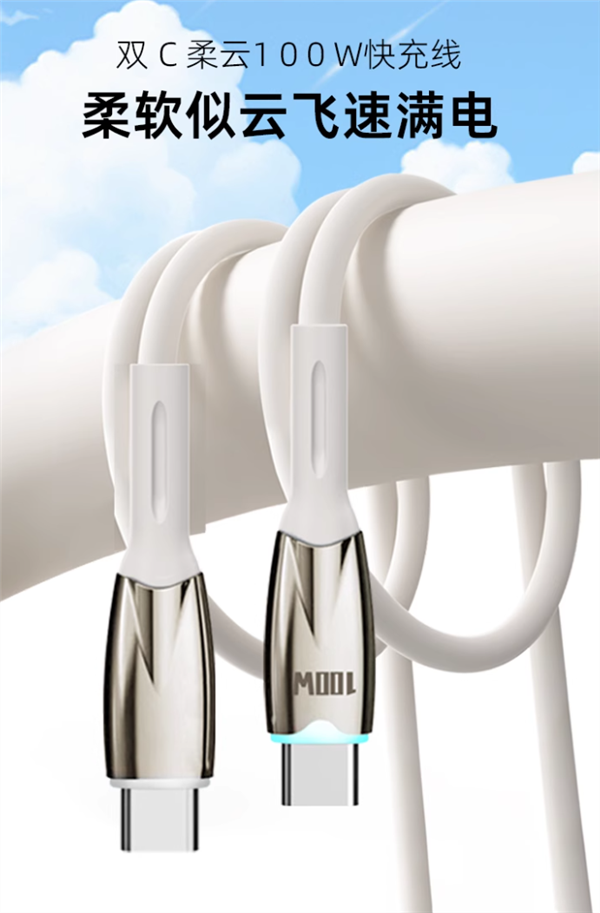 60MB/s快速传输,5A大电流疾速赋能,告别电量焦虑,稳定耐用5000+次,耐弯折插拔测试,柔软手感顺滑Q弹,支持魔术贴收纳。