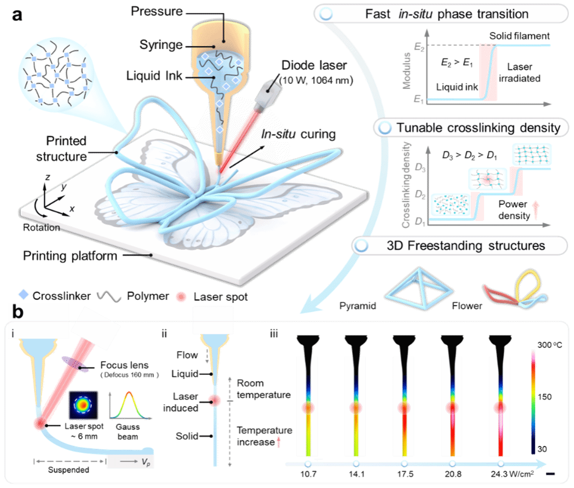 IT之家 11 月 30 日消息,厦门大学吴德志教授团队联合加州大学伯克利分校等机构,在 3D 打印技术领域取得突破性进展 —— 首创“激光原位诱导直写打印”技术。
