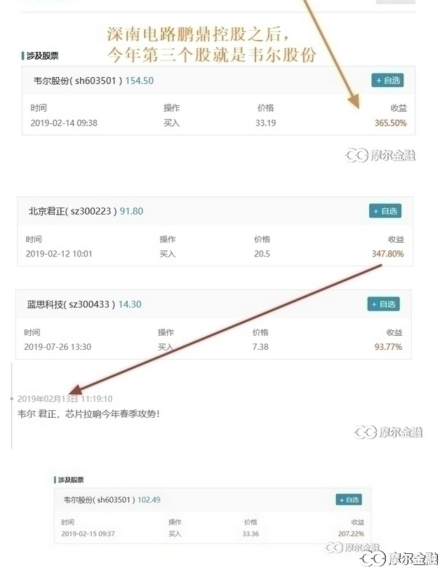 2022-2025年寒武纪新易盛中际旭创沪电股份等人工智能全程参与,2020年-2021年新能源行情参与者,2019年芯片和5G行情吹哨人,摩尔2018年和2017年度最佳撰稿人,雪球2015年大牛市东财同花顺十倍行情点火人,摩尔最早一批自由撰稿人,经典战役有新能源宁德时代赣锋锂业华友钴业整个产业链行情,十倍的韦尔股份沪电股份,五倍的北京君正卓胜微,三倍的深南电路中科创达国光电器漫步者,15年大牛市东财同花顺