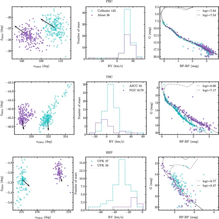 进一步分析显示,61% 的候选双星团在年龄和运动学上高度一致,支持其由同一巨大分子云共生形成的结果;83% 的星团对呈现显著潮汐相互作用。