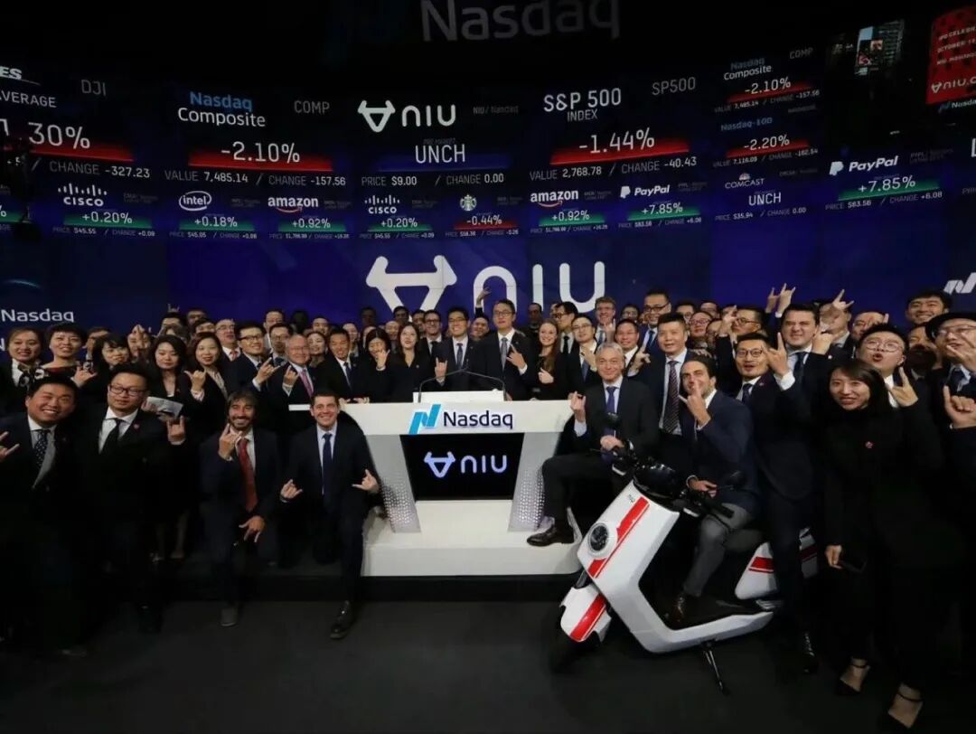 纳斯达克敲钟那天,站在交易所里看着小牛股票代码—— NIU亮起。