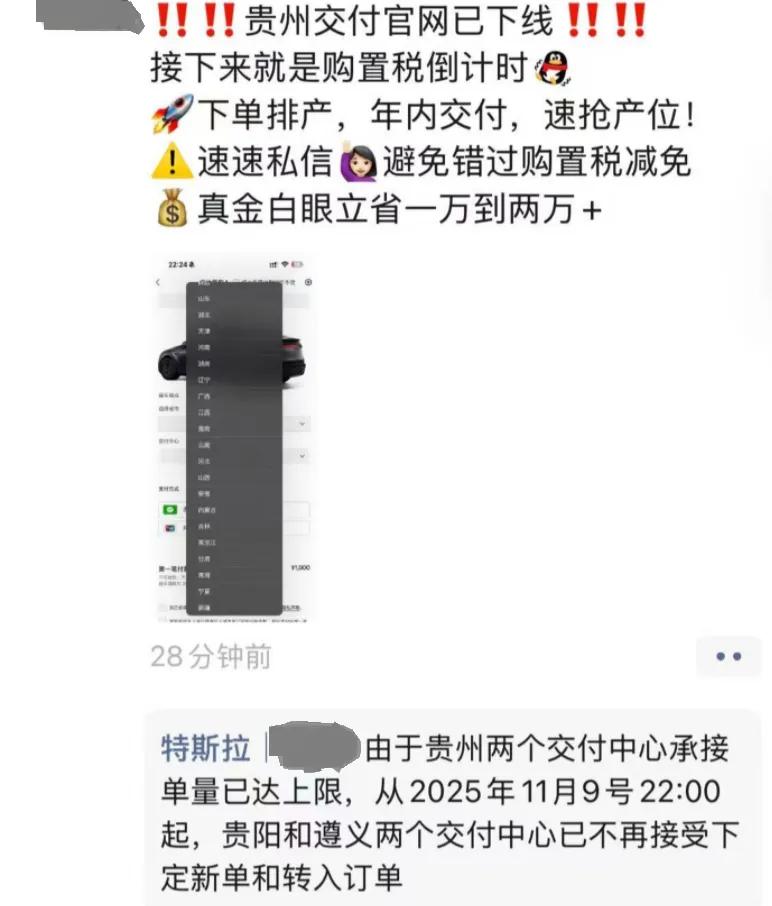 就在上个月 9 号晚 10 点起,由于 贵州两个交付中心承接单量已达上限,贵阳、遵义的两个交付中心被特斯拉中国从官网暂时下线。