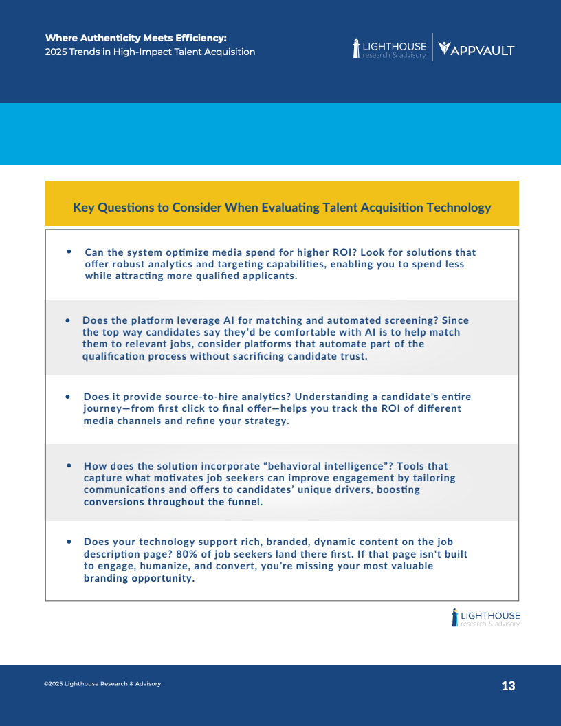 技术的角色正在被重新评估。23%的求职者对使用AI聊天机器人快速获取信息表示接受,但前提是这些工具能够真实有效地沟通。这提示企业可以通过自动化处理重复性任务,解放招聘人员投入更多精力建立真实的人际联系,从而实现效率与真实性的统一。