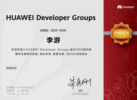 2024 年,我正式成为华为 HDE(Huawei Developer Expert)。对于外界来说,这可能是一个“头衔”;但对我自己来说,更像是一张“责任清单”——它提醒我:从今天起,你不再只是一个学习者和分享者,你还要承担起链接生态、服务社区的角色。