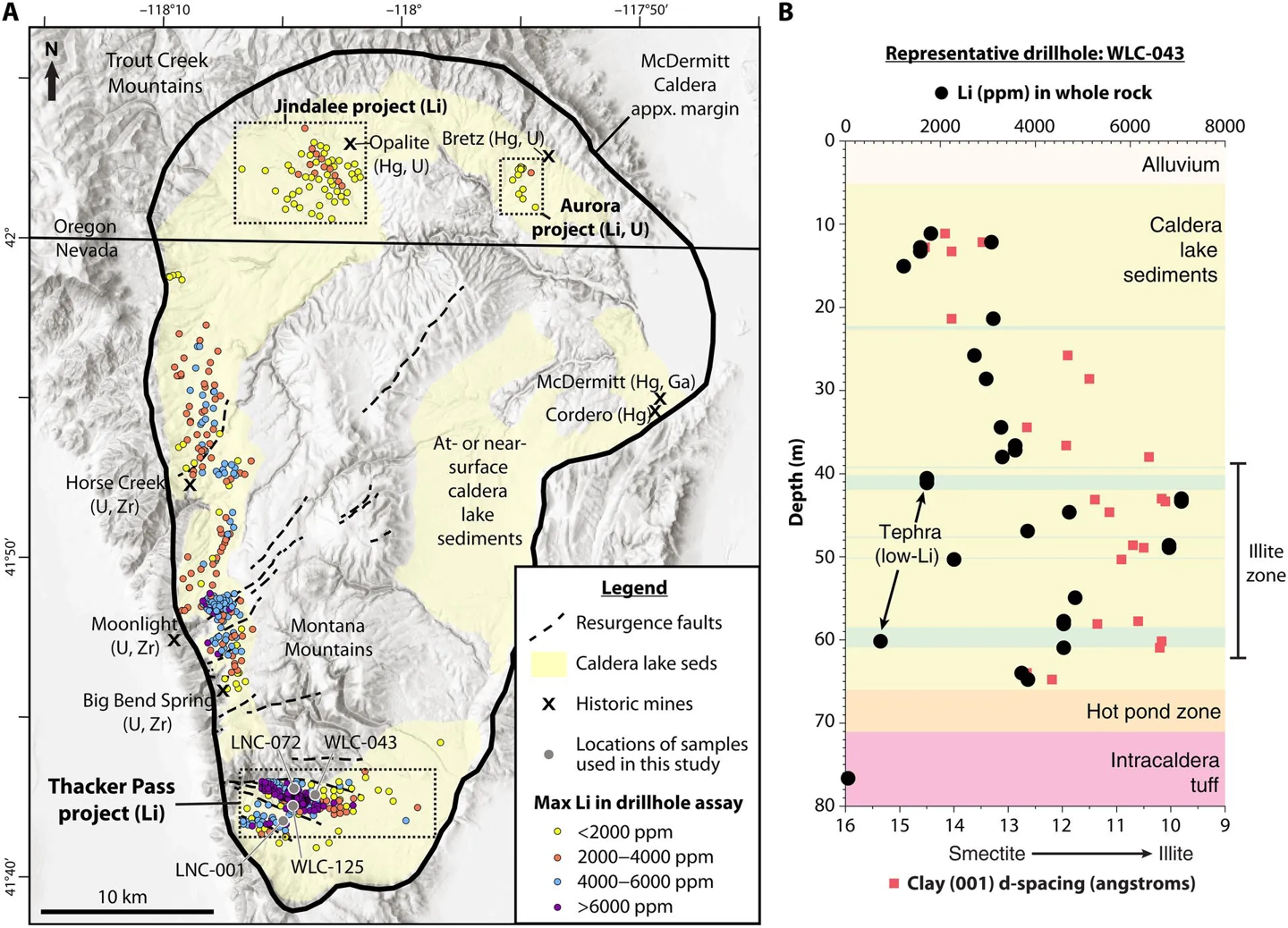 当时,一座由于剧烈喷发而导致岩浆室坍塌的超级火山,在内华达州至俄勒冈州沿线形成了一个南北长约 28 英里、东西宽约 22 英里的巨大火山口,造就了如今富含锂资源的特殊地质结构。