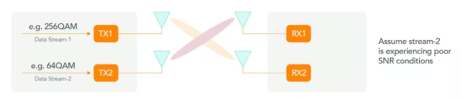 该特性使得跨多空间流使用非对称调制方案成为可能,主要用于提升多输入多输出(MIMO)系统中的传输效率。