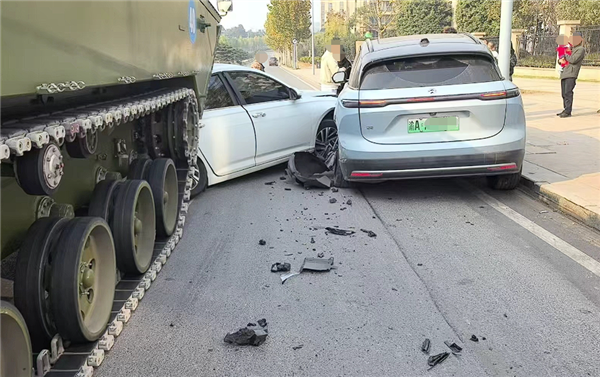 快科技12月3日消息,近日,重庆九龙坡区某十字路口,一辆正常直行的试制装甲车不慎撞上了一台违规掉头的大众轿车,并殃及路边停放的一辆蔚来SUV。