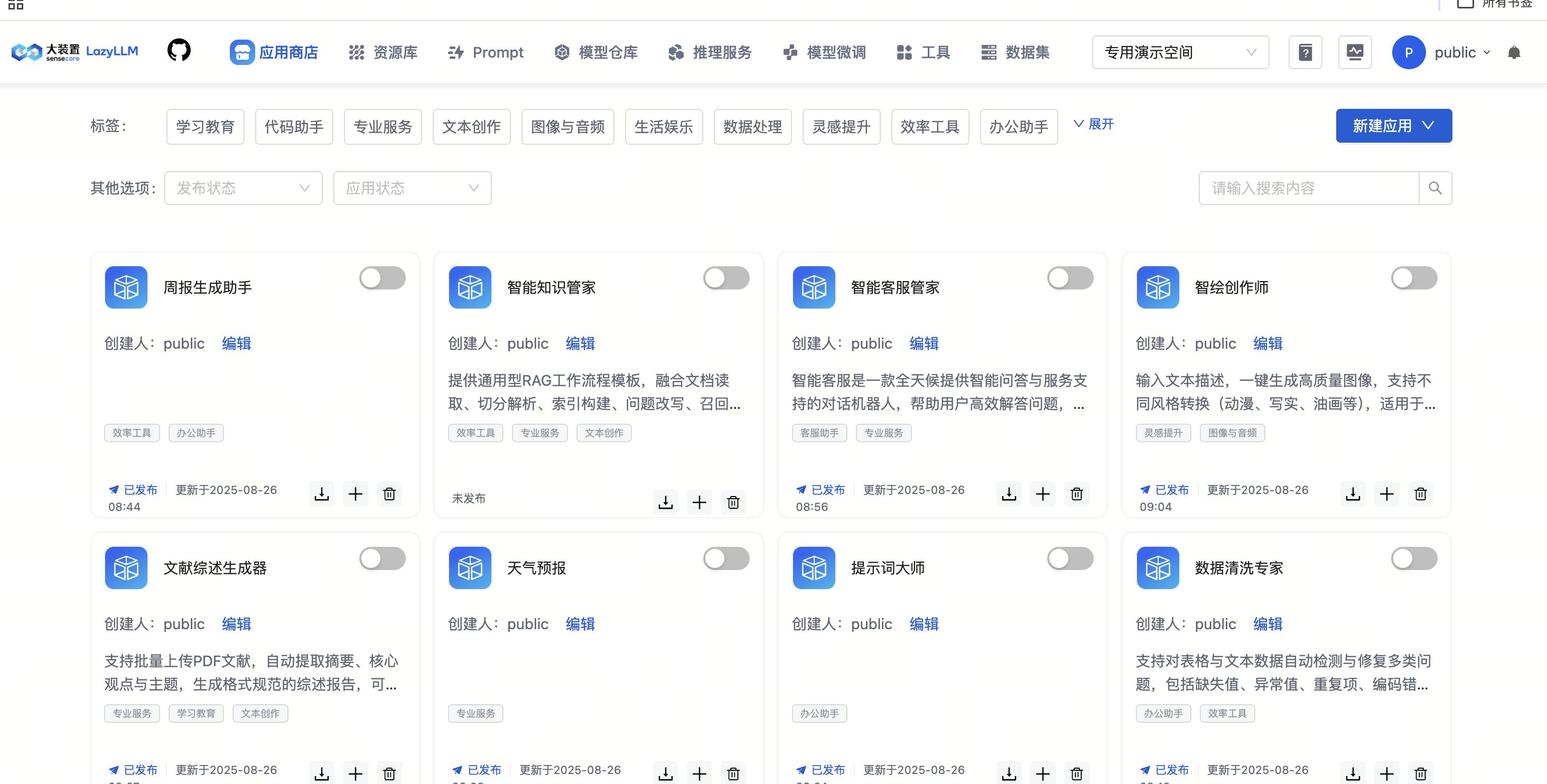 内置知识库、数据库、数据集、Prompt等资源,全都即插即用;