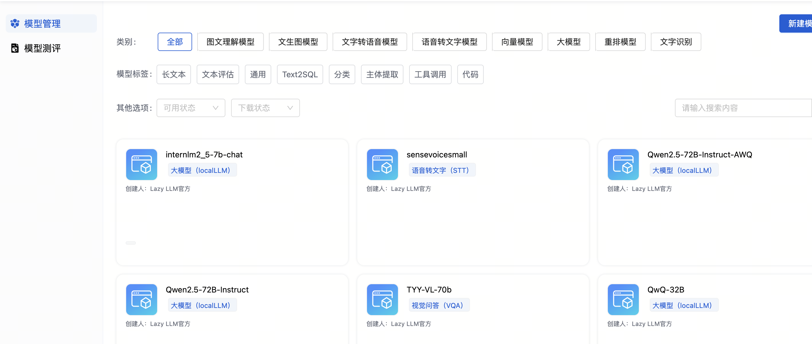 模型全生命周期管理:上传、下载、测评、微调,样样齐全;