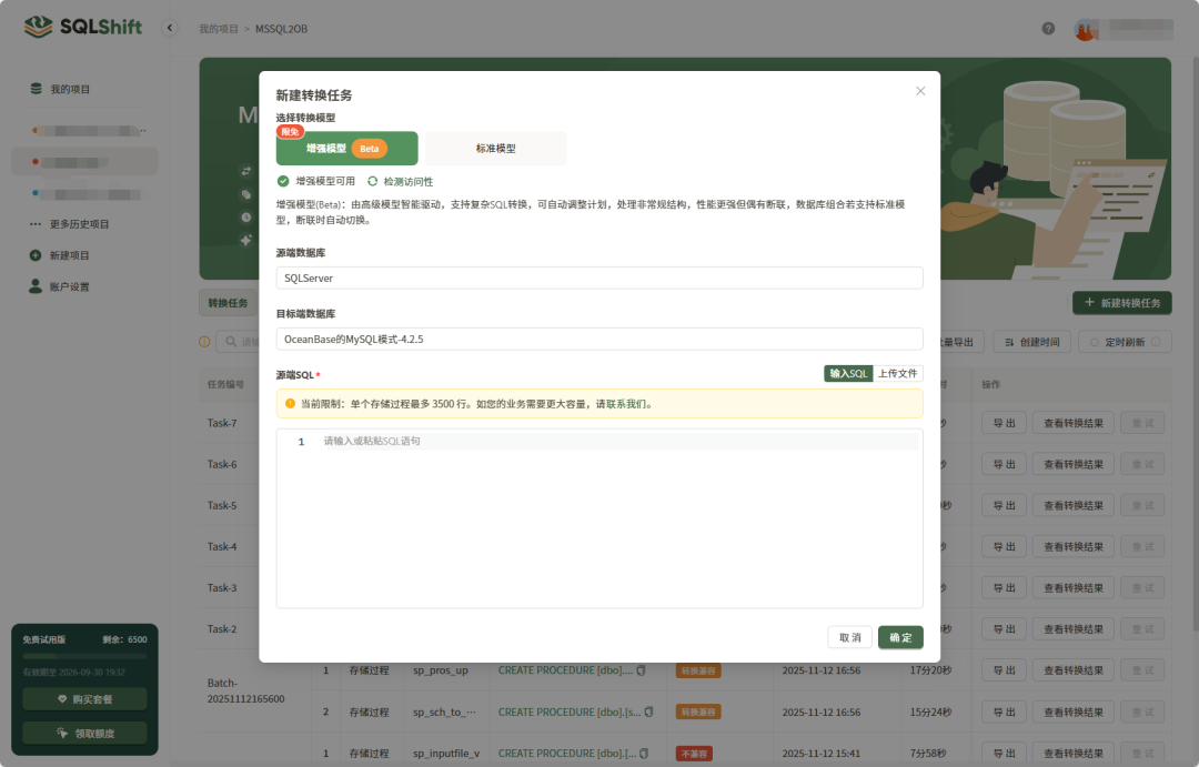 领取你的转换额度,立即体验  SQLShift  智能化迁移带来的飞跃效率吧!