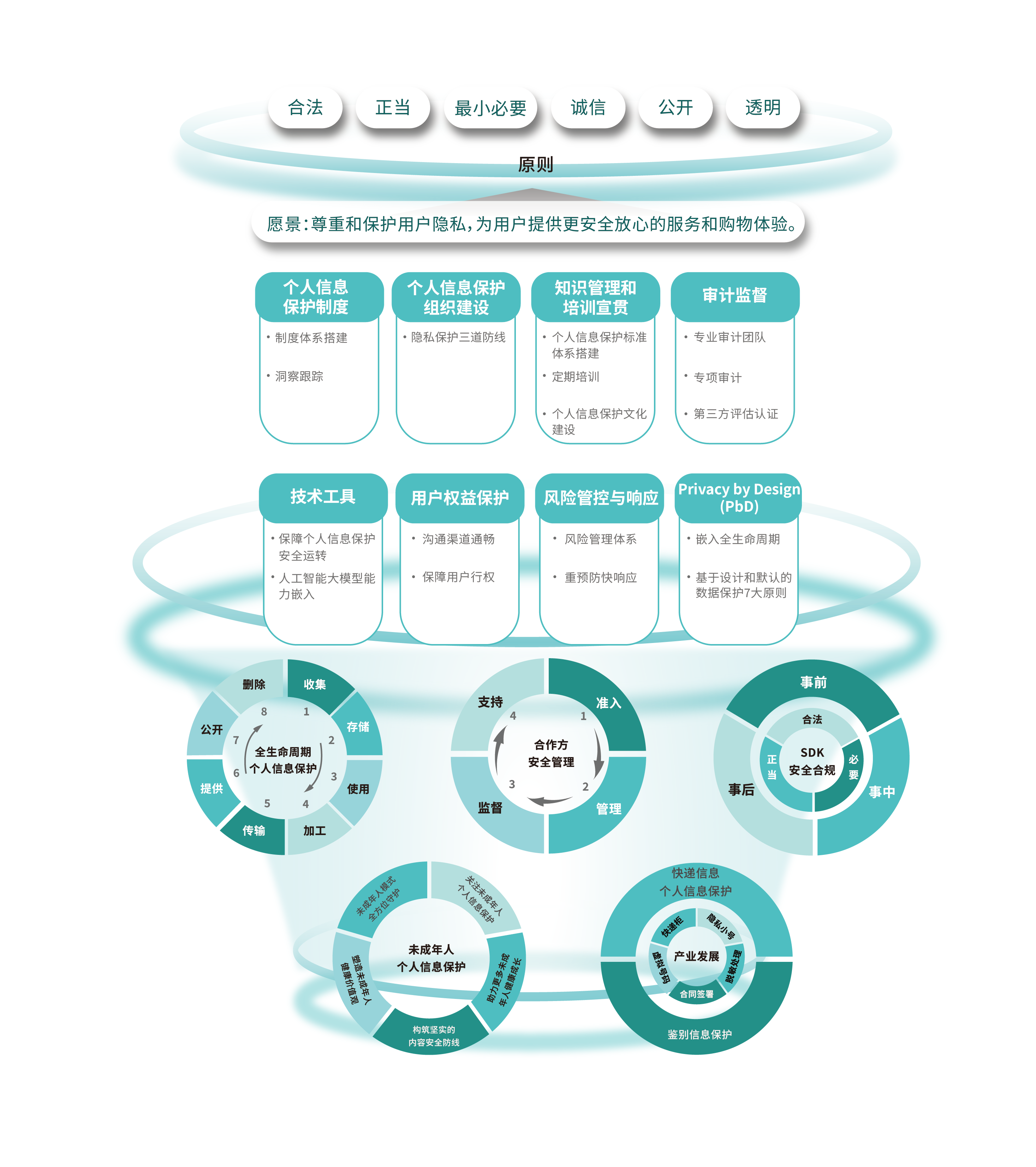 得物始终坚持将安全和隐私保护作为重要核心工作,公司自上而下高度重视,从组织建设、产品设计、技术发展和生态搭建等多维度贯彻隐私保护价值观。以”用户中心”为驱动,建立健全全生态、全周期、全流程的隐私保护管理框架。
