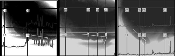 从左到右依次为坐姿、坐姿踩小板凳、蹲姿的直肠-肛门角,图片来源:参考文献2直肠-肛门角的角度越小,意味着直肠和肛门折叠得越厉害,而角度越大,意味着折叠程度越低。假如是 180 度,就意味着直肠和肛门成一条直线,便便可以畅通无阻地“倾泻而出”(不过这样的情况一般不会出现)。