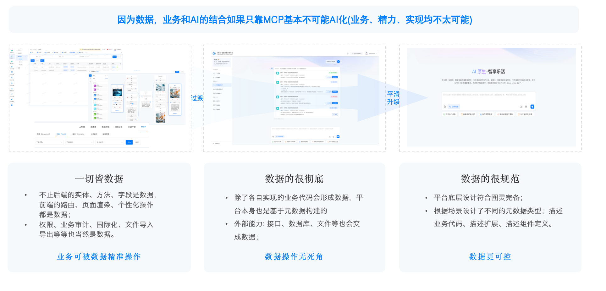 - 模型驱动 :从模型出发,统一驱动流程、页面、数据与逻辑,一次建模,多端复用。
