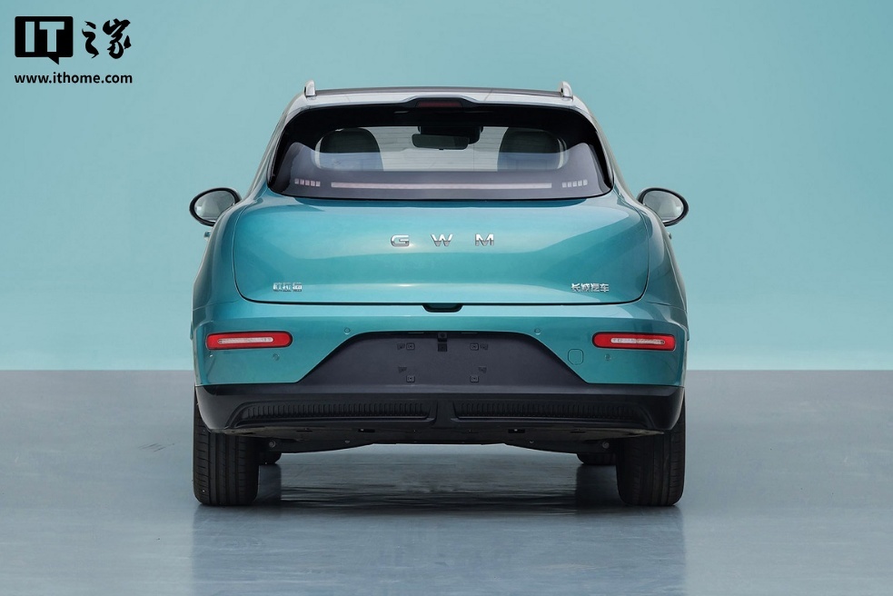 尺寸方面,这款汽车的长宽高分别是 4471*1833 (1844)*1641 mm,轴距为 2720 mm,尾部采用简约设计,尾门中部拥有“GWM”品牌标志,刹车灯、转向灯位于后窗下方、保险杠上方,整体采用上窄下宽的造型,呈现出低趴的视觉效果。