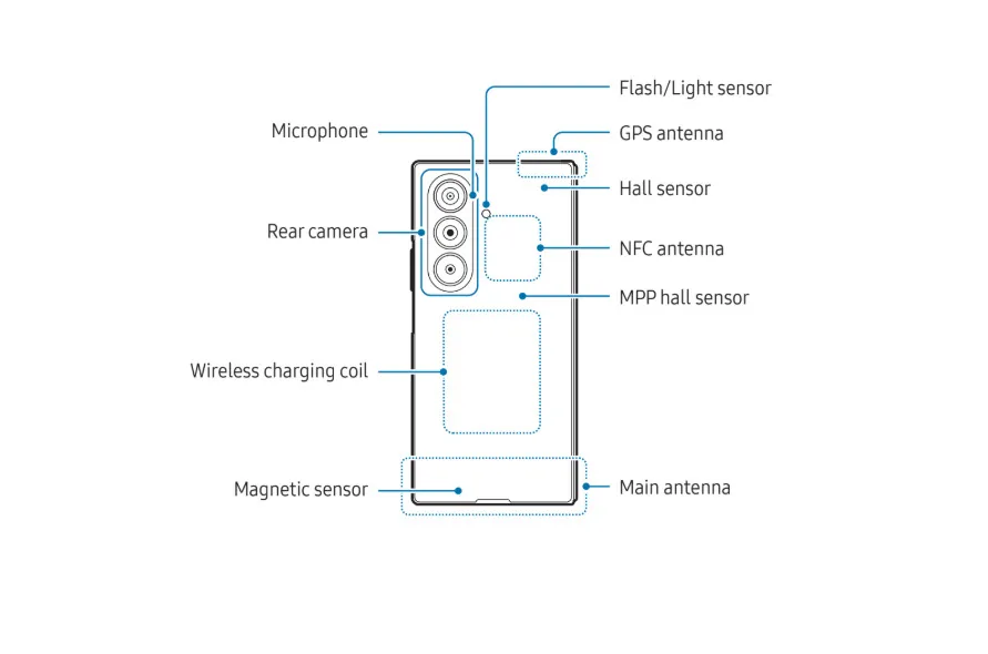 值得注意的是,手册中包含了几项严厉的安全警告。首先,由于机身内部为了实现三折叠结构使用了大量磁铁,三星明确建议植入心脏起搏器或其他医疗器械的用户,避免将手机放置在靠近植入物的位置(如胸前口袋)。