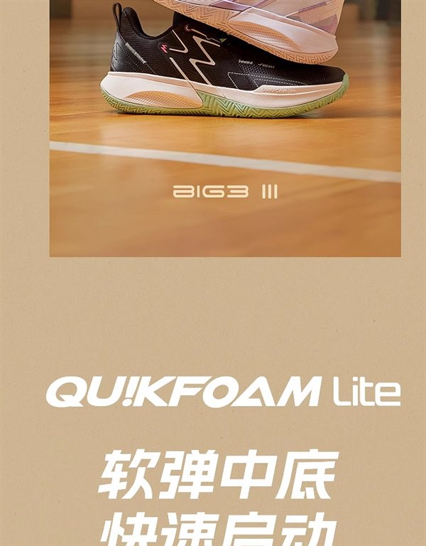 QU!KFOAM LITE 中底科技,落地缓震,前掌高弹反馈,脚感舒适,轻快每一步。