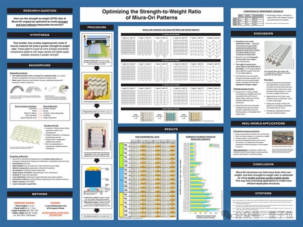 最终,经过54种手工折叠变体、108组严谨测试,迈尔斯锁定了那个强度与重量比最完美的三浦折纸形态。