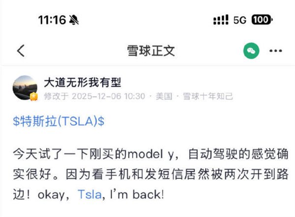 这一由安全机制引发的“惩罚”并未让他恼火,反而令其发出“Okay, Tesla, I’m back!”的感叹,暗示其对特斯拉产品力的重新认可。