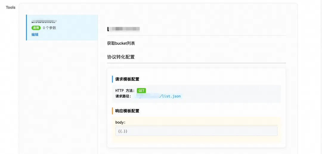 接着在 Nacos 控制台上配置 MCP 工具,添加一个简单工具,可以选择一个无参数 GET 接口,并发布。