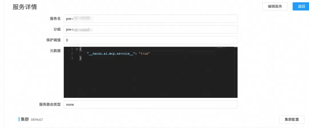 1)在 Nacos 中注册服务,并配置 MCP 工具的元数据信息: