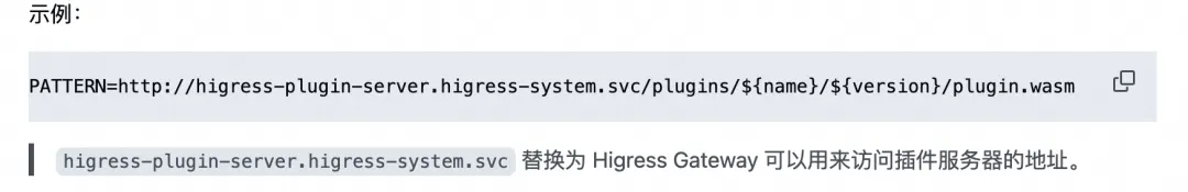ENV HIGRESS_ADMIN_WASM_PLUGIN_CUSTOM_IMAGE_URL_PATTERN=http://[申请的k8s service地址]/plugins/\${name}/\${version}/plugin.wasm