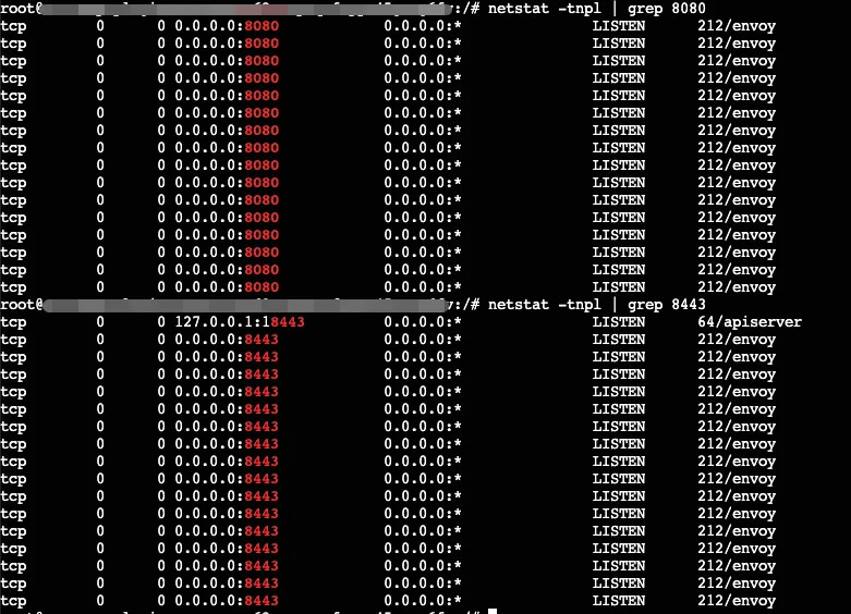 配置完独立的插件 HTTP 下载地址后重新部署,在服务器上可以看到 8080 端口以及 8443 端口可以被正常监听,说明 Higress 具备代理和网关功能的核心数据面组件已经可以正常服务了。