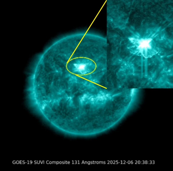 预计,太阳爆发所喷出的物质在12月9日到达地球,届时将可能引发地磁暴,磁暴强度可达中等地磁暴甚至更强。