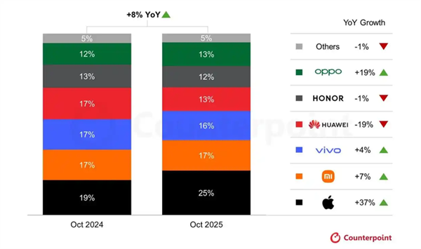 能让苹果官方主动降价,iPhone 17 Pro系列的实力绝对毋庸置疑!不久前根据CounterpointResearch的最新报告,10月苹果在中国智能手机市场的销量占比飙升至25%,意味着每售出4部手机就有1部是iPhone,这样的成绩仅在2022年出现过一次,足以见得消费者对它的认可。